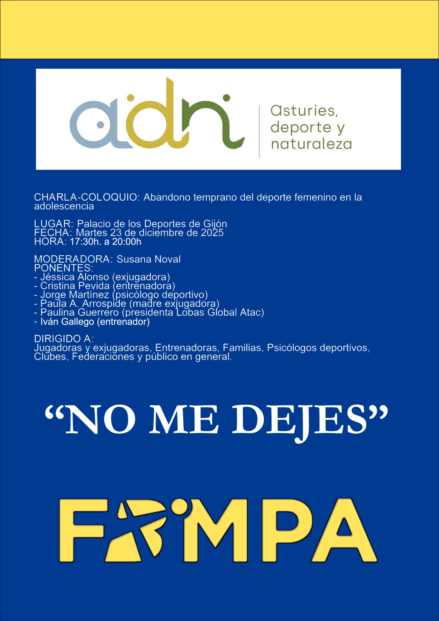 El encuentro se celebrará el martes 23 de diciembre de 2025, de 17:00 a 20:00 horas, en el Palacio de los Deportes de Gijón. La charla-coloquio estará moderada por Susana Noval y contará con la participación de ponentes como la exjugadora Jéssica Alonso, la entrenadora Cristina Pevida, el psicólogo deportivo Jorge Martínez, la madre de exjugadora Paula A. Arrospide, la presidenta de Lobas Global Atac Paulina Guerrero y el entrenador Ivan Gallego, entre otros.